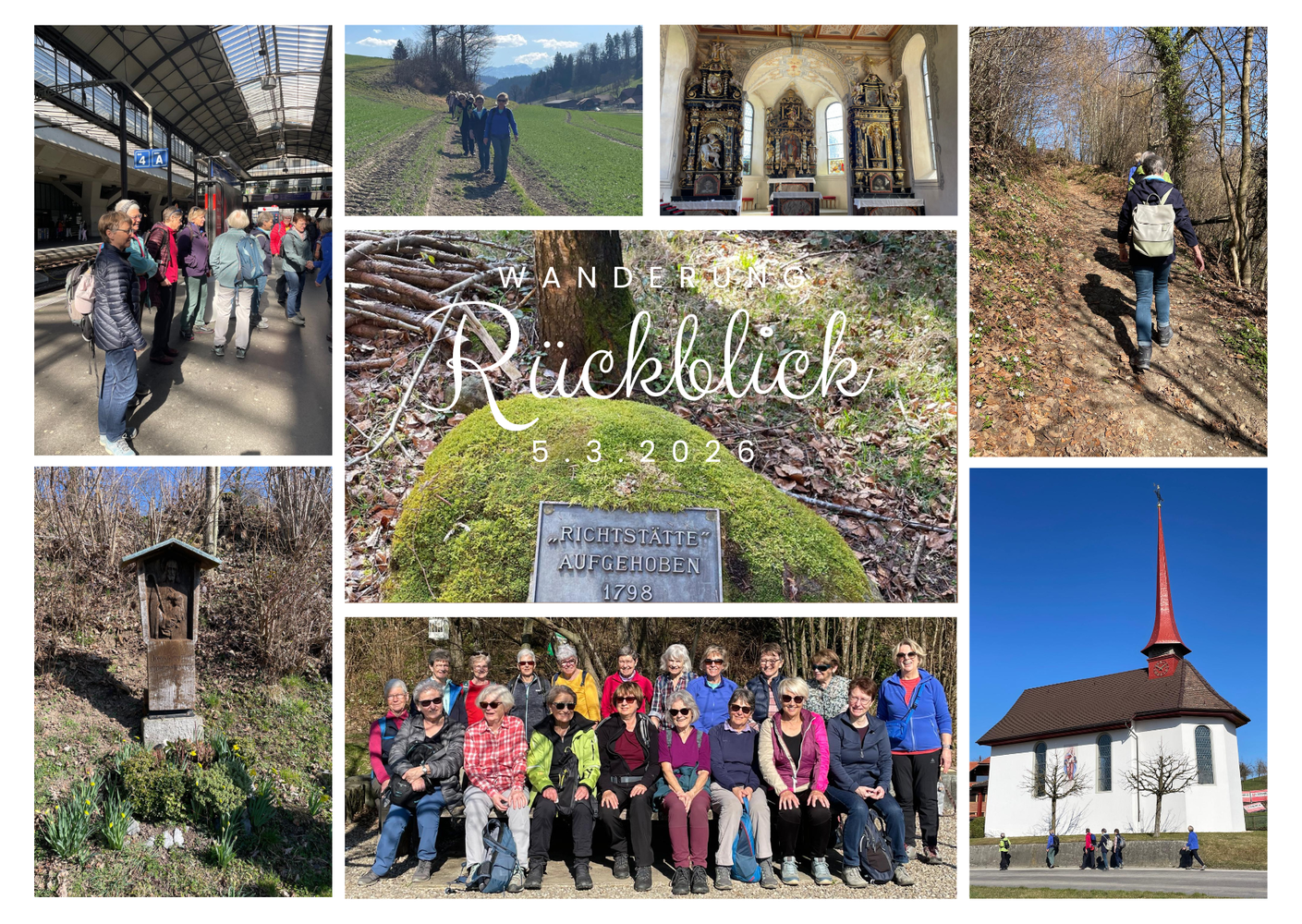 Das sonnige Wetter, in der Ferne ein tolles noch weisses Panorama, die ersten blumigen Frühlingsboten, die Kapelle St. Gallus und Erasmus am Jakobsweg oder die einstige Richtstätte auf dem Galgenberg - es gab einiges zu entdecken und der Weg hügelauf und hügelab stärkte ihre Fitness und machte sie gluschtig auf die Konditorei Steiner am Ende der Strecke.