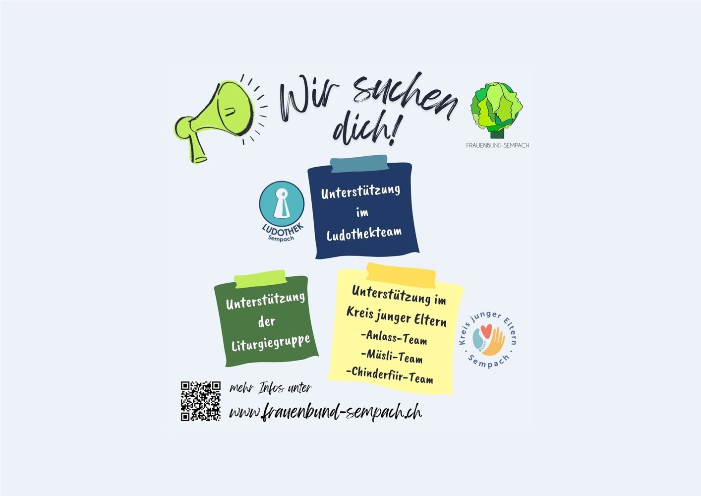 Jede Form der Unterstützung ist willkommen und wertvoll. Sei es als regelmässige Mitarbeit im Vorstand oder ab und zu an einem unserer Anlässe. Ehrenamtliches Engagement im Frauenbund bietet die Möglichkeit, Talente einzubringen oder neue Fähigkeiten zu erwerben.